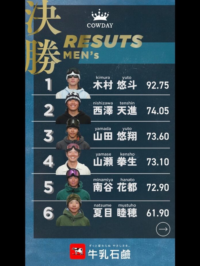 木村悠斗・村瀬由徠が頂点に COWDAY SLOPE 2026で連続V