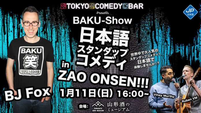 海外スキーリゾートでは定着している「Après Ski」文化を、日本有数の温泉地である蔵王温泉ならではの形で展開します。会場となる山形酒のミュージアムでは、山形の日本酒や地酒を楽しみながら公演を鑑賞することができ、温泉地の夜に「酒・笑い・交流」が重なる新しい体験を提供します。観光のピークが日中に集中しがちな蔵王温泉において、夜間の滞在価値を高める取り組みとしても位置づけられています。本イベントでは、英語公演および日本語公演を開催。海外からのお客様、日本人観光客、地元住民まで、言語や国籍を問わず楽しめる構成となっています。出演者は、TOKYO COMEDY BARを拠点に活動する実力派コメディアン。山形の酒を片手に、スタンドアップコメディならではのライブ感と即興性を活かした、その場限りのエンターテインメントを提供します。