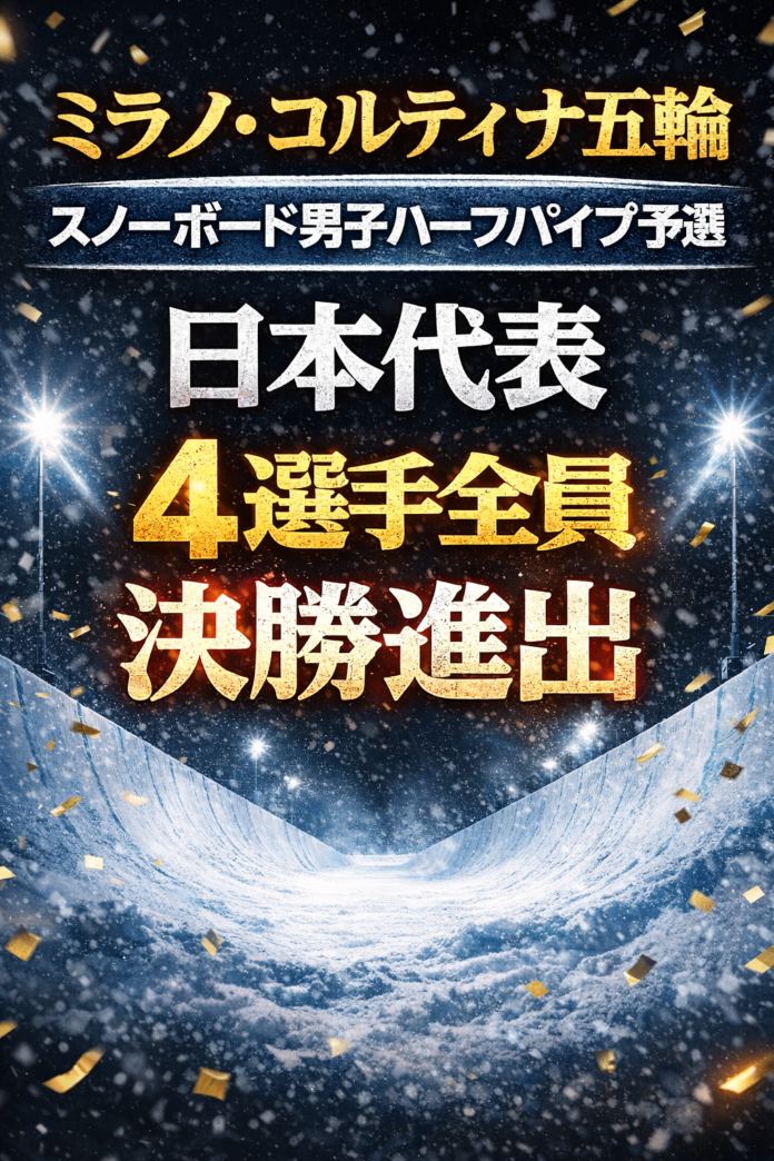 ミラノ・コルティナ五輪スノーボード男子ハーフパイプ予選で、日本代表は出場した4選手全員が決勝進出を果たした。