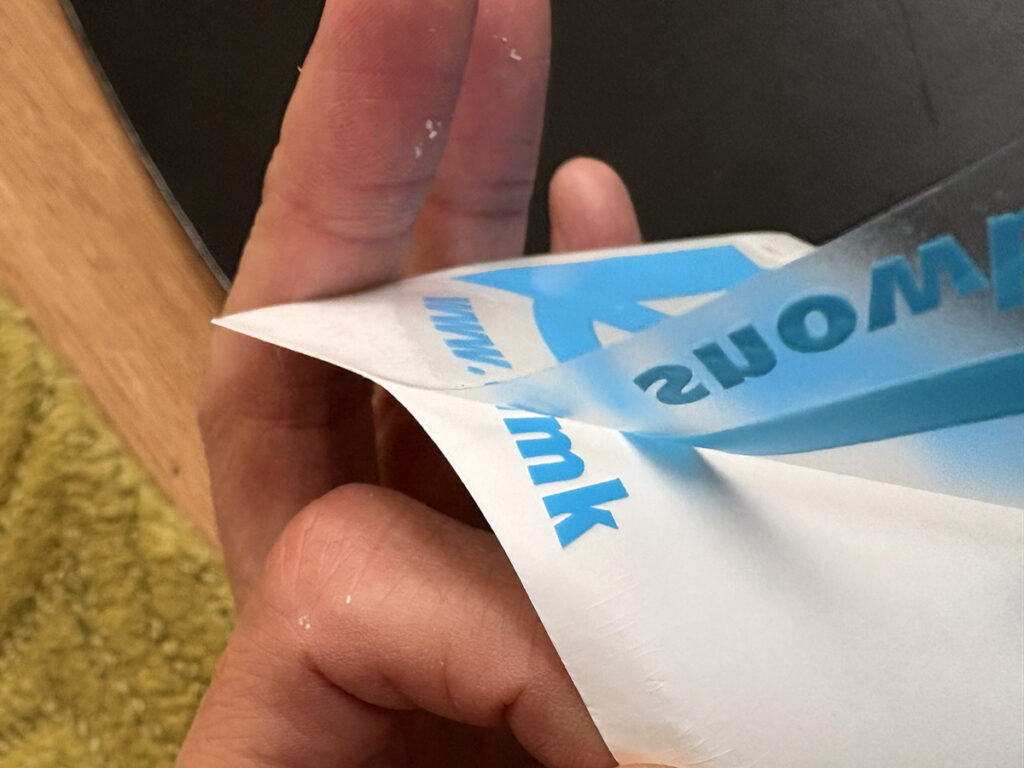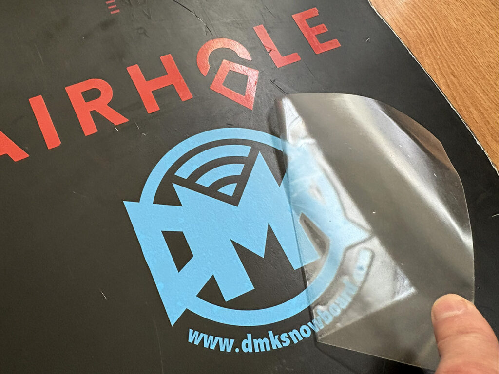 新しいステッカーを貼る前に、ボードの表面が乾いているか、ホコリがついていないかを確認します。ここが整っていないと気泡が入りやすくなるので、意外と大事なポイントです。