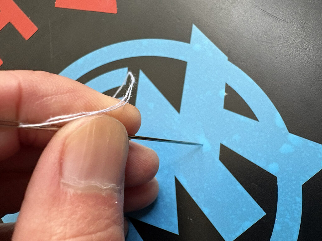 貼り終わった後、どうしても小さな気泡が入ってしまうことがあります。そんな時はカッターの刃先や針を使って、ほんの小さな穴を開けて空気を逃がします。