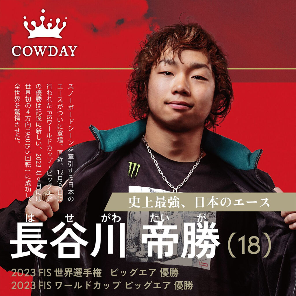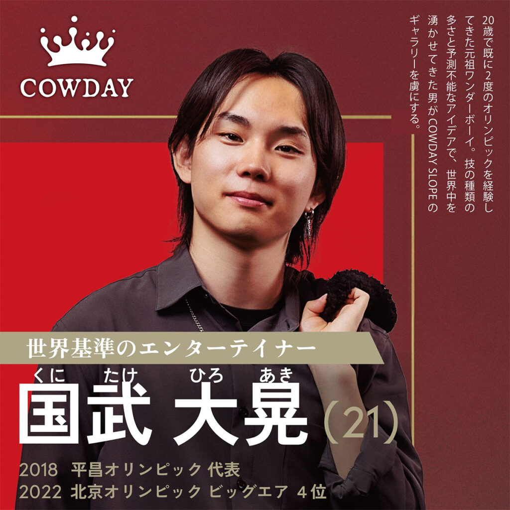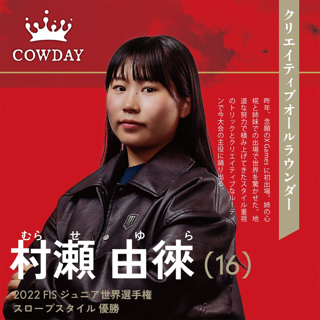 においても、13歳という若さで優勝し、最年少記録を樹立。世界を制した天才ライダーが満を持してCOWDAY SLOPEに登場する。