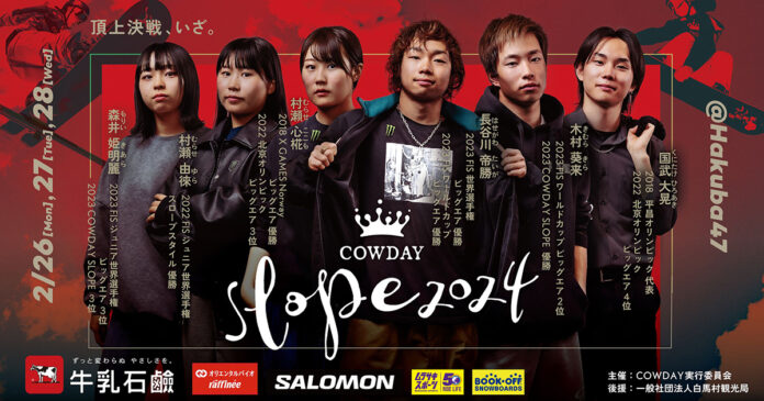 公認大会「COWDAY SLOPE 2024」に協賛し、国際大会として大会の開催を決定!併せて、大会のメインビジュアルと、すでに参加が決定している有力選手6名の選手ビジュアルを公開した。