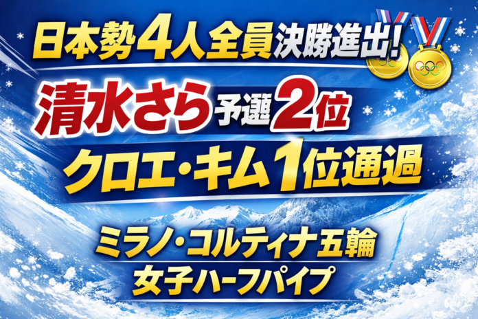 ミラノ・コルティナ五輪のスノーボード女子ハーフパイプ予選がイタリア・リビーニョのスノーパークで行われ、日本勢は出場した4人全員が決勝進出を果たした。世界最高峰の舞台で、日本チームの総合力があらためて証明された形だ。