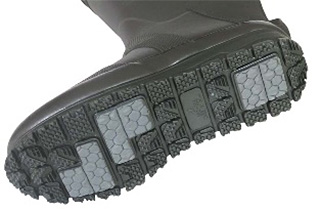 ボディには特殊配合の軽量ラバーを採用。総丈約40cm(Mサイズ時)でふくらはぎまでしっかり覆う構造ながら、軽さを維持している。