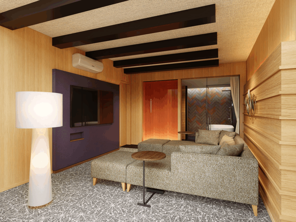 新しい客室の特徴は、北欧テイストのデザインより広く、落ち着いた空間天然温泉や地元食材を使った料理との組み合わせで、贅沢な滞在を演出いたします。
