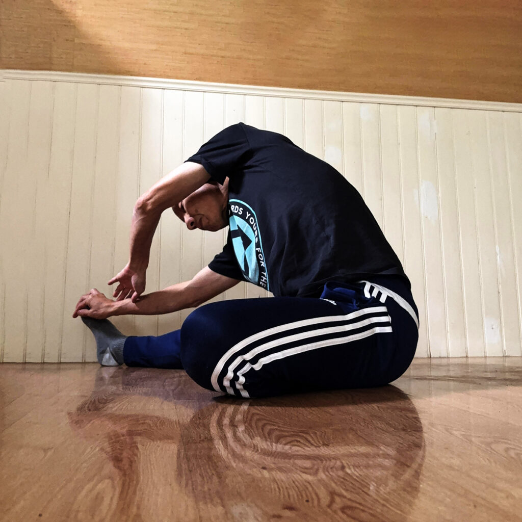 朝の散歩から帰った後、座った状態でハムストリングスを伸ばす姿勢のまま、背中だけに意識を向けてゆっくり伸ばします。さらに、お風呂上がりや就寝前にも軽く行っています。その結果、ギックリ腰はほとんど起きなくなりました。