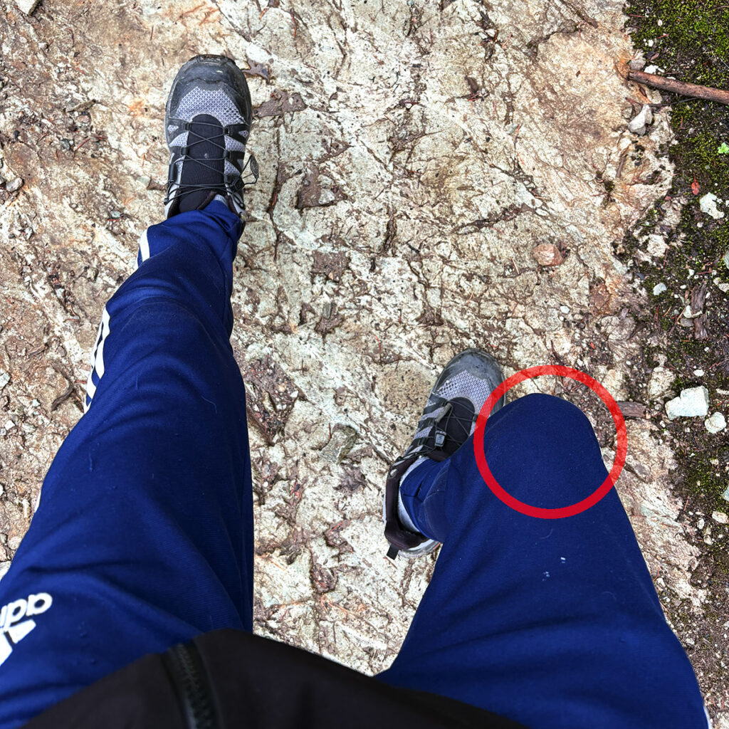 今年のオフトレでは、この右膝上部の筋力を高める方法を考えました。最も効果を感じたのは、下り坂での片足立ちからの軽いスクワットです。平らな場所でも同様に行うと、膝周辺の筋肉が効率よく鍛えられます。