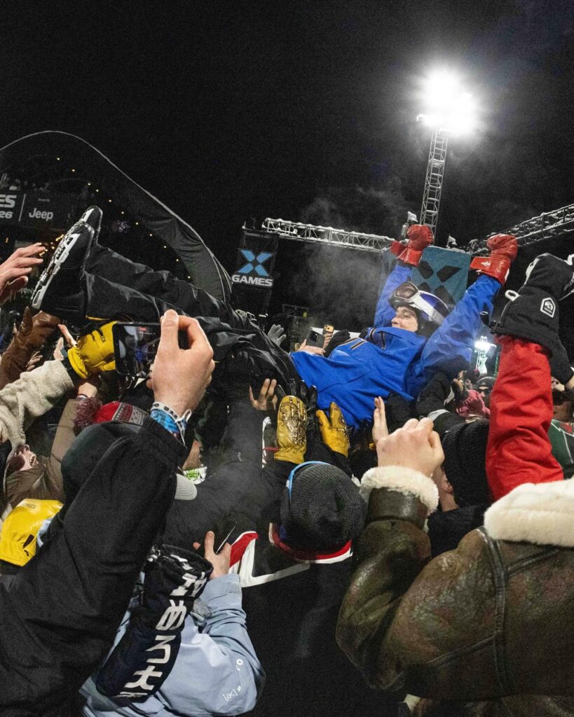 最終となった3本目では、これまで大会で成功例のないスイッチバックサイド1440からバックサイド1440という超高難度コンビネーションに挑戦。着地で手がついたものの、95点の高得点をマークし、見事金メダルを獲得した。