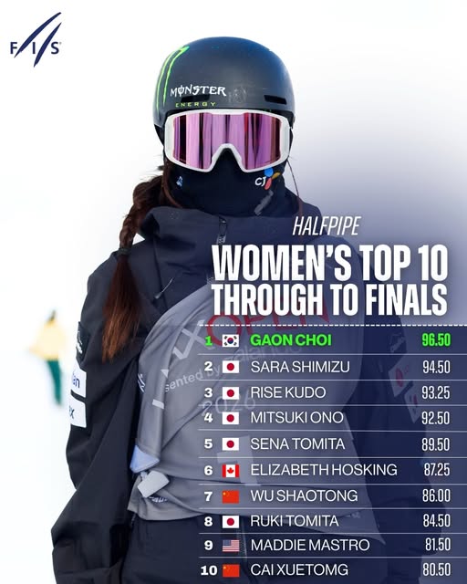 なお、1位通過は韓国のチェ・ガオン。新世代の台頭が際立つ女子ハーフパイプは、新たなステージへと突入している。