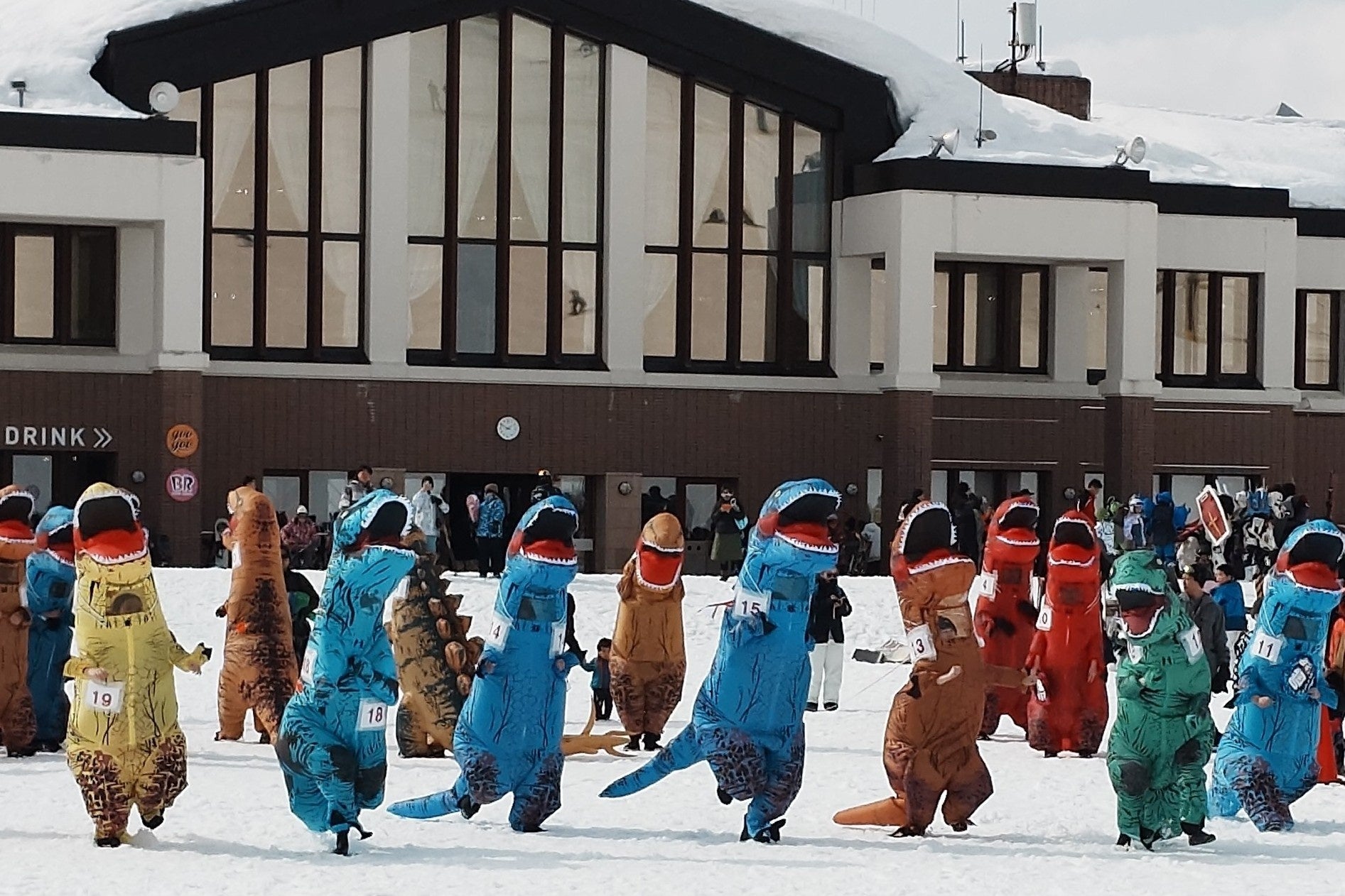 大人気の「ティラノサウルスレース」が今シーズンも1月に開催決定。恐竜の着ぐるみでゲレンデを駆け上げるユニークなレースは、参加する人も、応援する人も大盛り上がりです。さらに、ご家族でご参加いただける「雪だるまを作ろうイベント」は1月と2月の2回開催予定。技自慢のスノーボーダーが集う「グラトリ大会」は3月開催予定など、多彩なイベントを実施します。開催日や詳細はスキージャム勝山公式HPにて随時発信いたします。