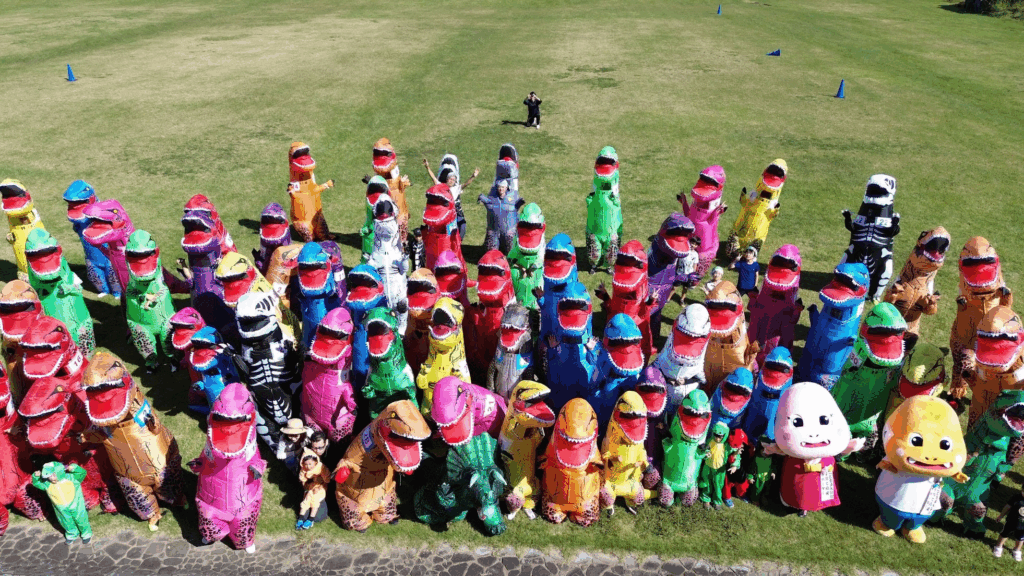 レース前のラジオ体操では、ティラノサウルスたちが一斉に体を回したり止まったりし、観客の顔にも自然と笑みがこぼれ、会場は温かな雰囲気に包まれます。やがて始まるレースでは雰囲気が一変。汗だくになりながらゲレンデを駆け抜け、時に転びながらゴールを目指す恐竜たちに、観客からは大きな声援が送られます。このイベントは、単なる競争を超え、その場にいるすべての人々が「楽しさ」を分かち合う、明るくハッピーな空間を生み出しています。
