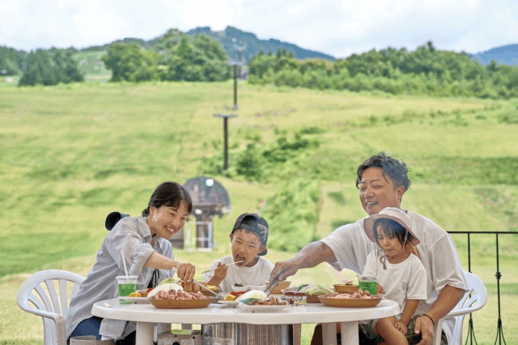 恐竜博物館から車で約10分、スキージャム勝山のグリーンシーズンは、緑豊かな高原の中でのアクティビティや、手ぶらで楽しめるバーベキューガーデン、福井土産やアウトドアブランドのアパレルが豊富な売店など、1日中豊かな自然環境の中でお楽しみいただくことができます。