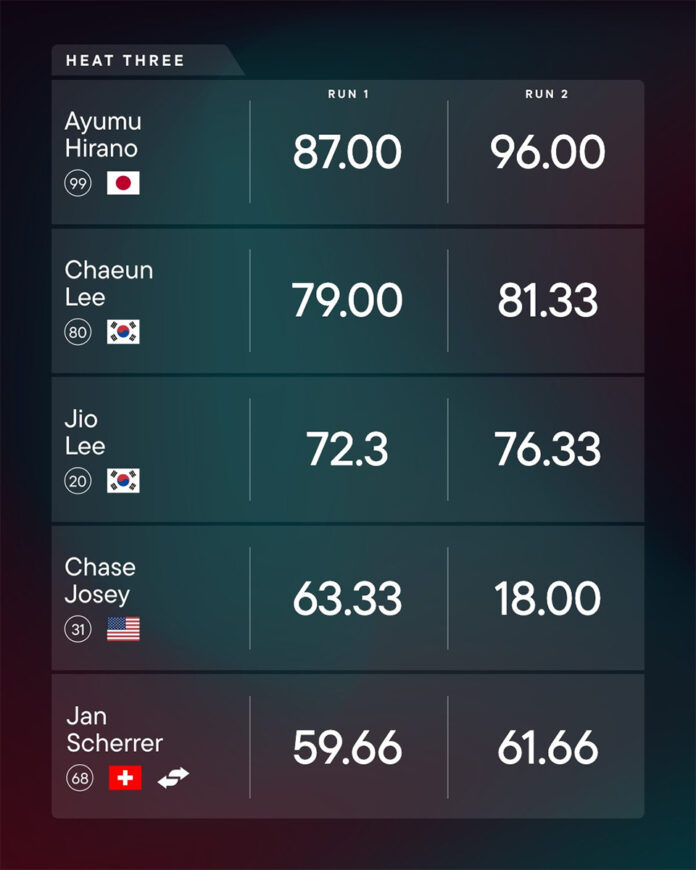 さらに2本目では、歩夢にとって新技となるスイッチBS900から入り、そこからCABダブルコーク1440、FS900、BSダブルコーク1260を繋げて、最後はFSトリプルコーク1440でフィニッシュ!安定した高さとトリックの完成度で96ポイントを獲得し、この日の出場選手の中で最高得点となった。