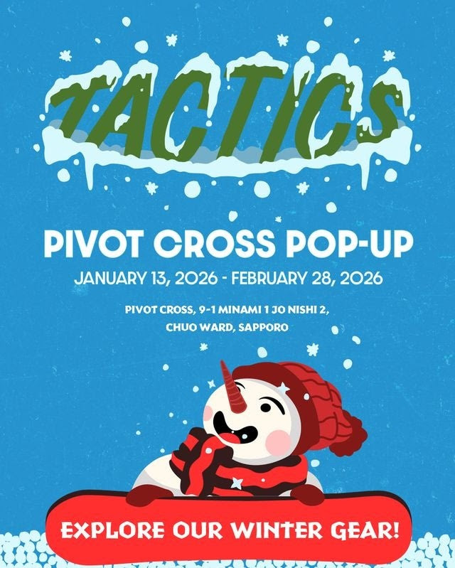 ㈱TSIホールディングス(本社:港区赤坂 代表取締役社長CEO 下地 毅)の子会社となる㈱ジャック(代表取締役社長 赤堀 丈)が日本国内において運営している、米国オレゴン州を拠点にスケートボードとスノーボード用品を展開している「TACTICS」のサッポロファクトリー店が、2026年1月13日より札幌市中央区の大通りにある商業施設「PIVOT CROSS(ピヴォクロス)」にて、POP UP STOREを開催いたします。