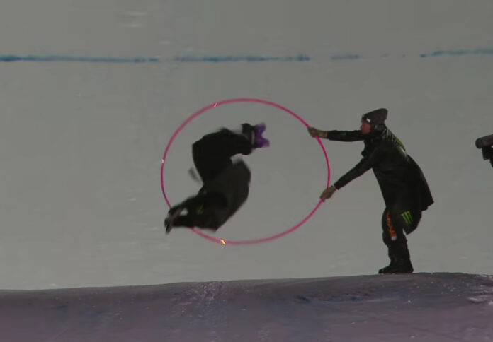 X Games Aspen 2026で行われたMen’s Snowboard Knuckle Huckでは、ビッグエアと同じジャンプ台を使用しながら、あえてキッカーを飛ばず、その手前にある“ナックル”と呼ばれるロールオーバー部分を使ってトリックを繰り出す。